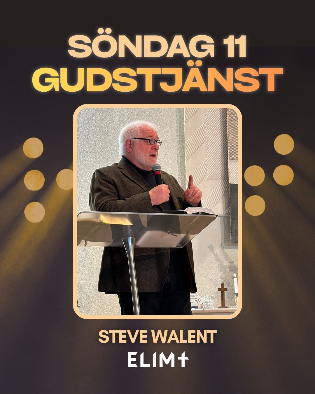 Söndag 11 Gudstjänst, Steve Walent predikar, Elim Kids, efteråt blir det gemenskap kring borden i caféet. Translation to several languages, bring your own mobile and headphone.